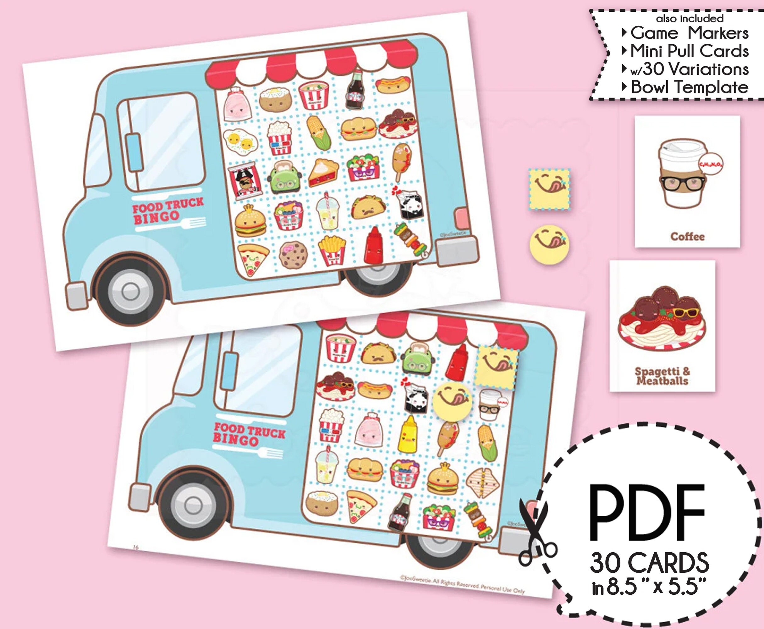 Food Truck Bingo Game Kitprintable Pdf Download Etsy